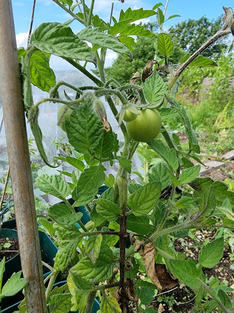 I ended up taking the tomato plants to the allotment and planting them there to see if they liked it. It did seem to like its position as it developed into a nice-sized plant. Producing a few decent tomatoes.
