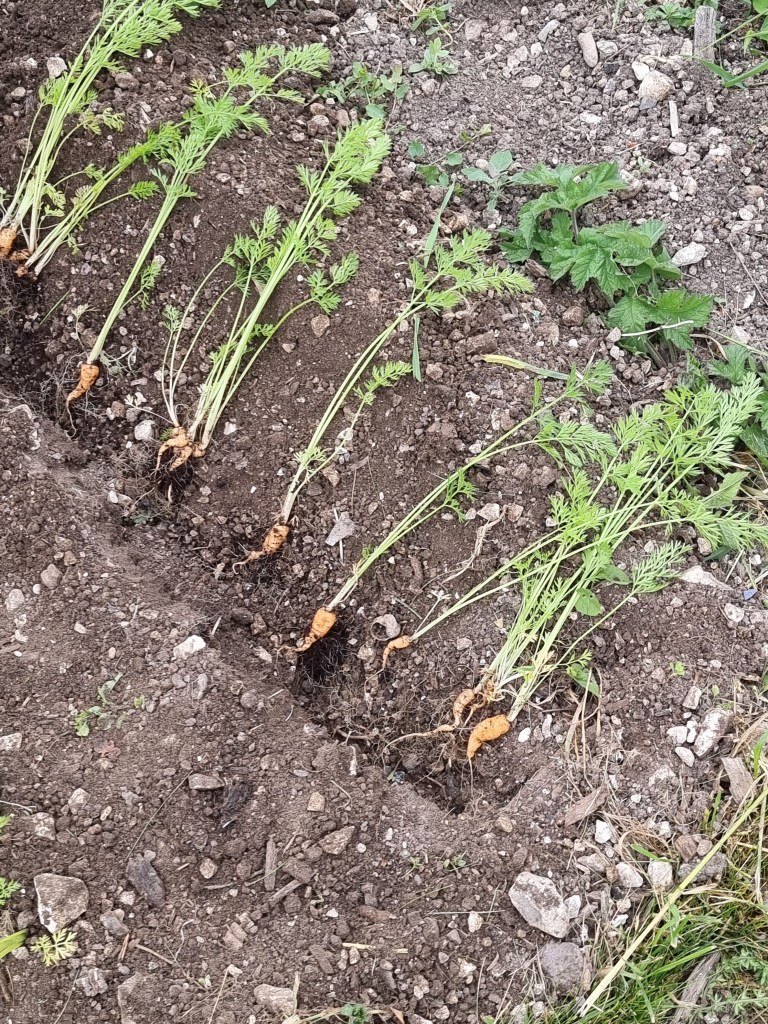 The lesson of the month was carrots. I had planted a bunch of carrot seeds in my initial phase and was pleased to see the carrot tops always looking green and healthy. I had however sowed them all together and so I thought it might be a good idea to separate them. I pulled up the bunch revealing some cute little carrot-lets and spread them out.