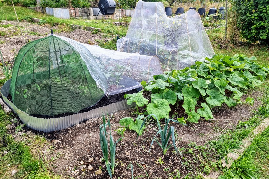 - Some spindly cabbages that were hanging on under the netting